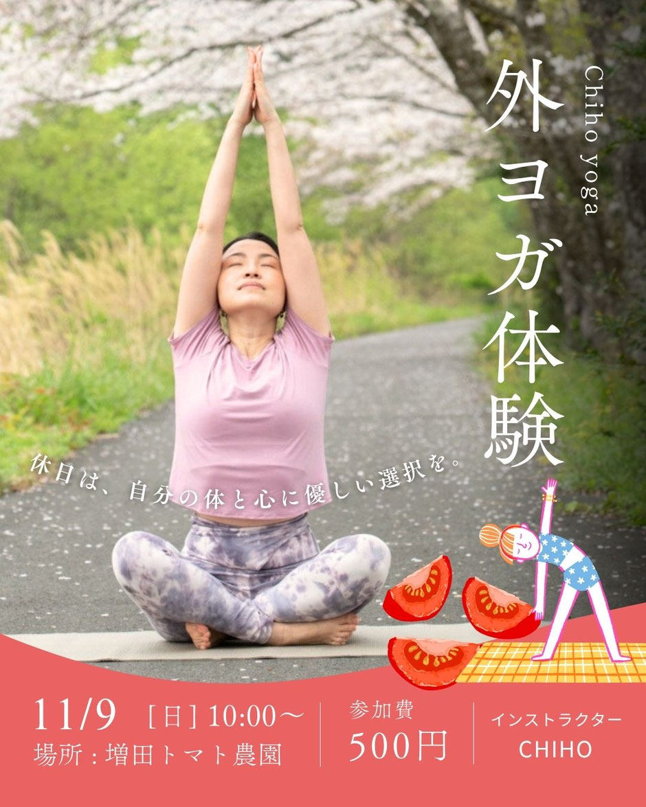 体験時間が決まっております。ご予約なしでも参加可能ですが、確実に参加したい方は、お名前と希望の時間帯をCHIHO YOGA専用LINEにお知らせください。確保しておきます。ヨガマットはございますでの手ぶらでご参加下さい。参加費は¥500です。
