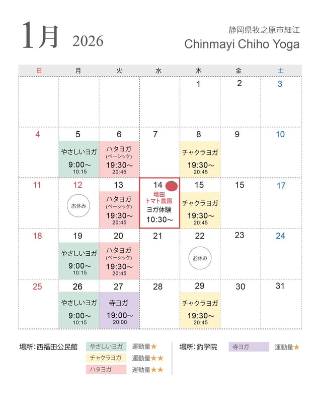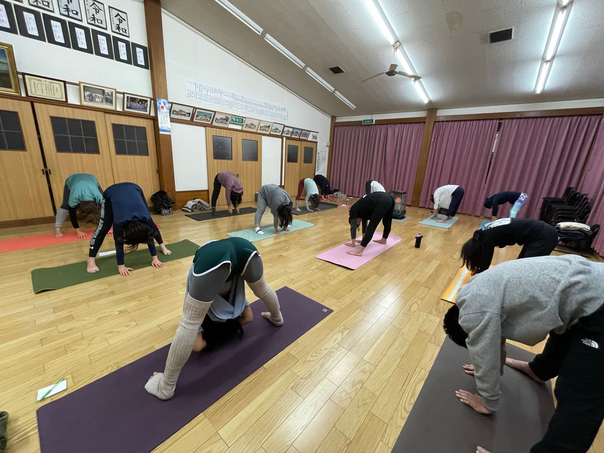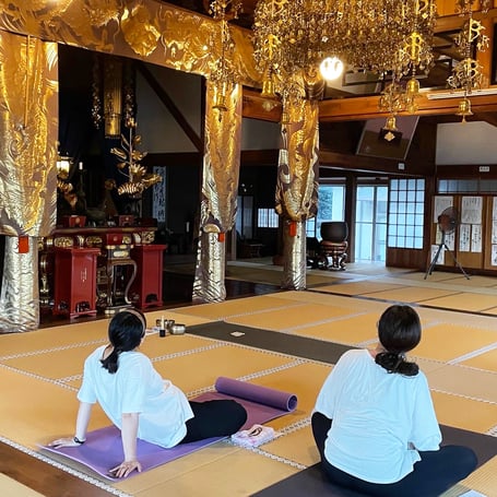 ヨガの教えの中にサントーシャ「足るを知る」という教えがあります。今あるものに満足する。求めすぎず、心が穏やかでいられる環境でヨガをしていただきたいという想いから、昔から地域に愛されて存在している公民館(西福田公民館)・お寺(釣学院)でクラスを開催しています。どこか素朴でほっとする空間にこだわっています。今あるそのままでお越しください。貸出マットのレンタルも無料です。